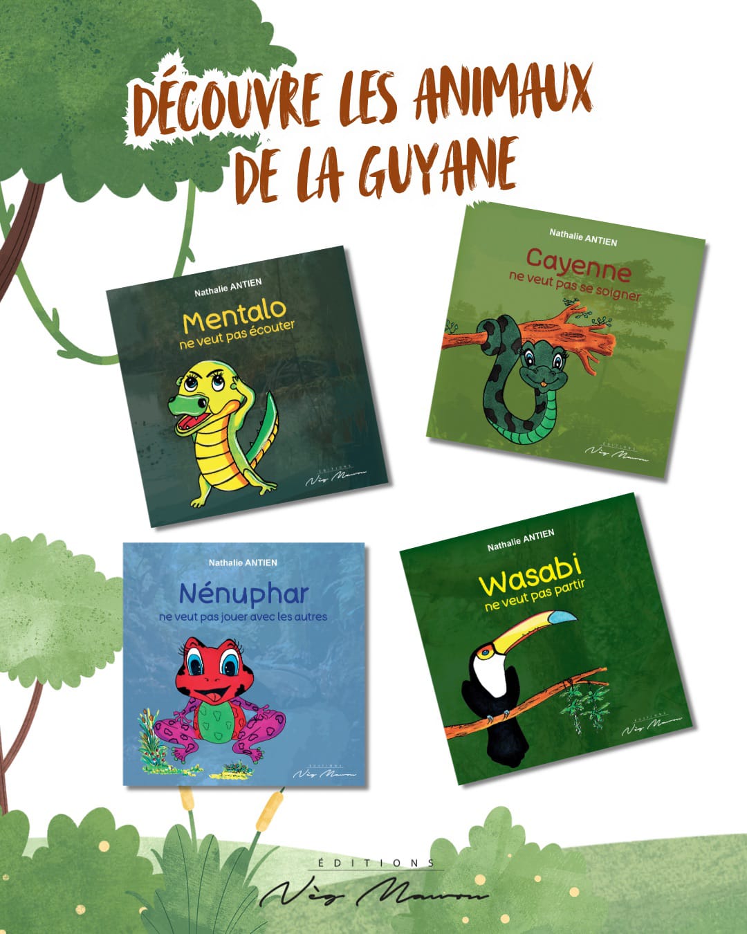 album éducatif illustré de la collection « les animaux de Guyane ont du caractère » publié chez Neg Mawon éditions.